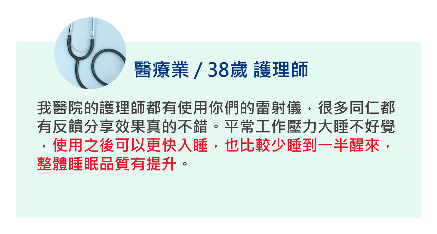 | 治療時間 | 每日2小時 建議循序漸進使用 |