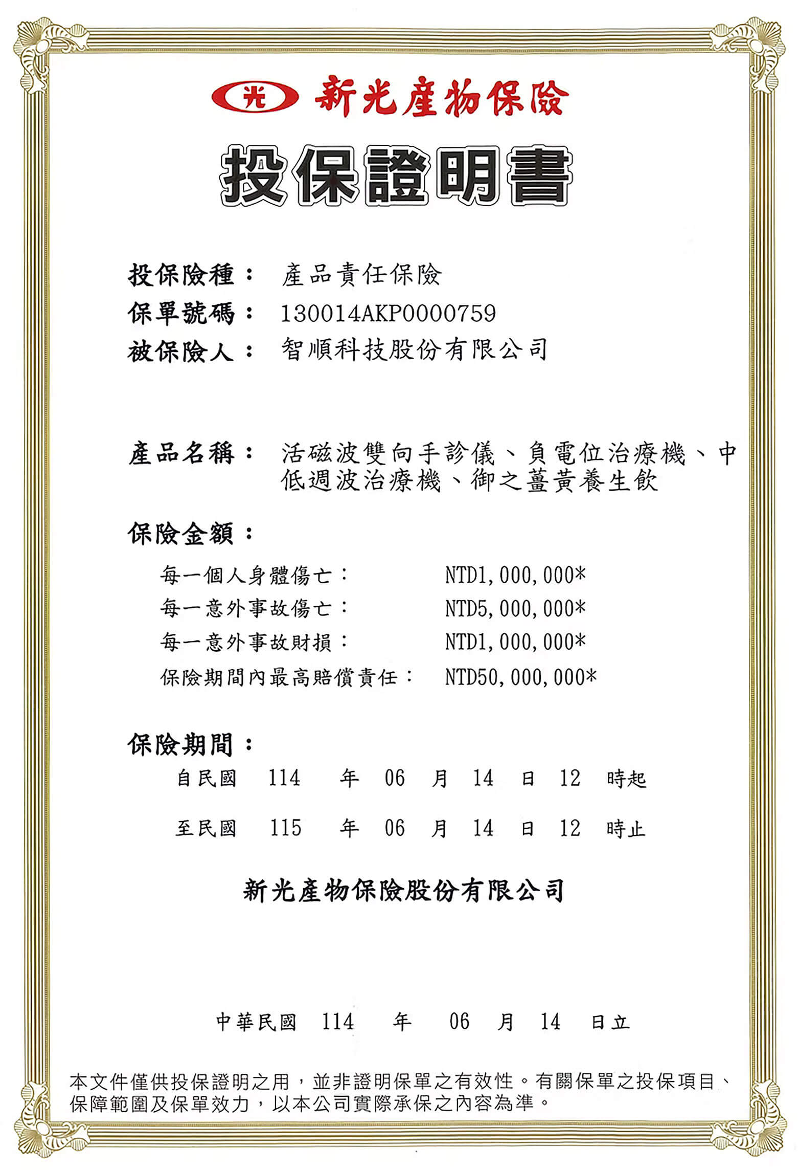 本產品已投保產品責任保險,使用安心有保障