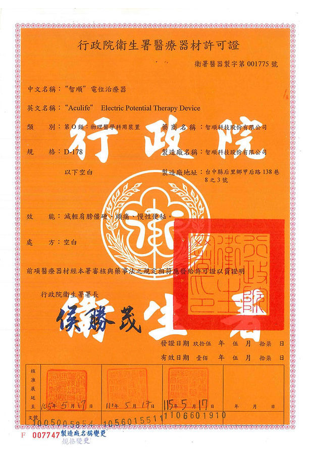第二類醫療器材,許可證號為衛署醫器製字第001775號。
