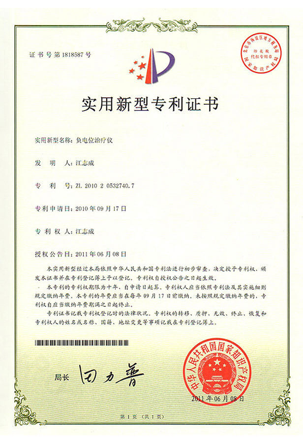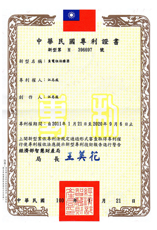 發明專利M396697號*負電位治療器。